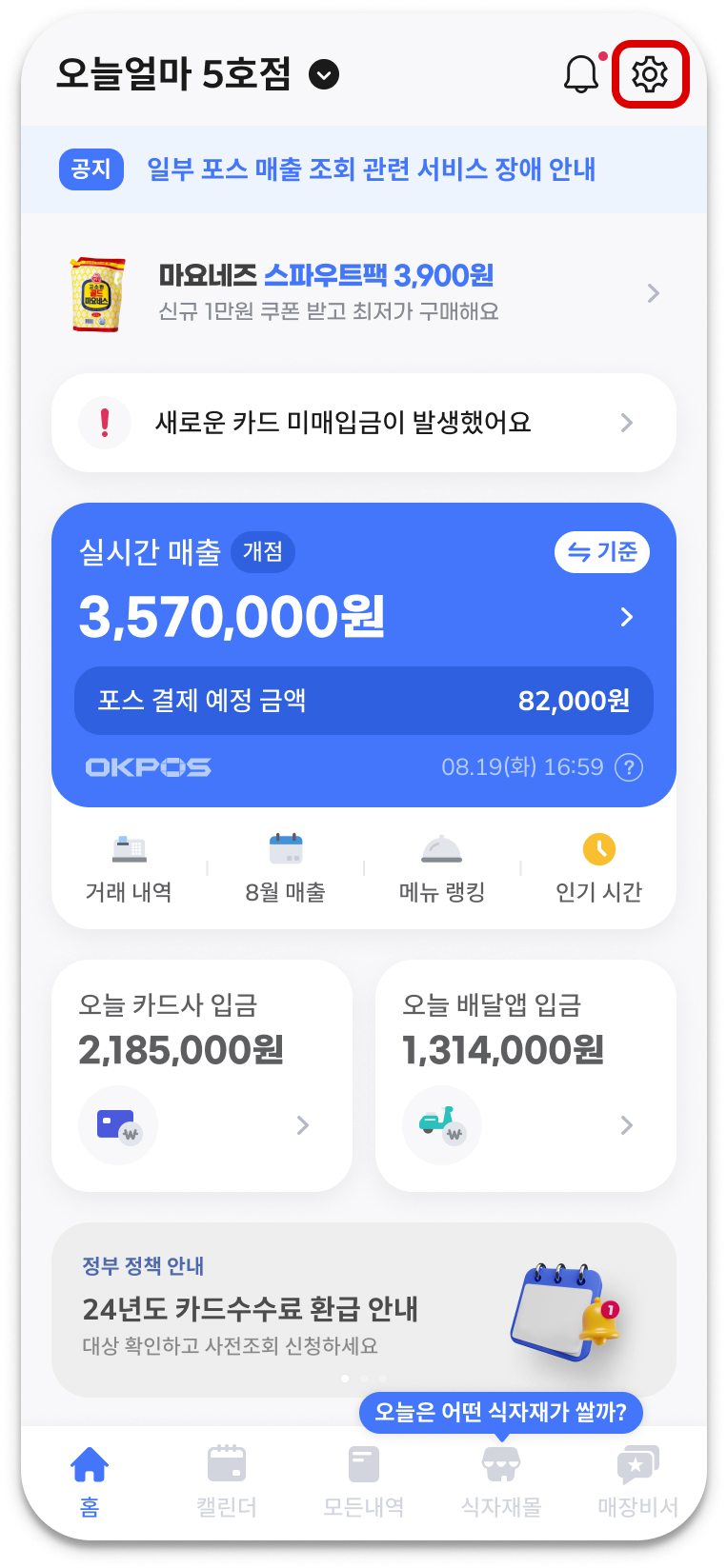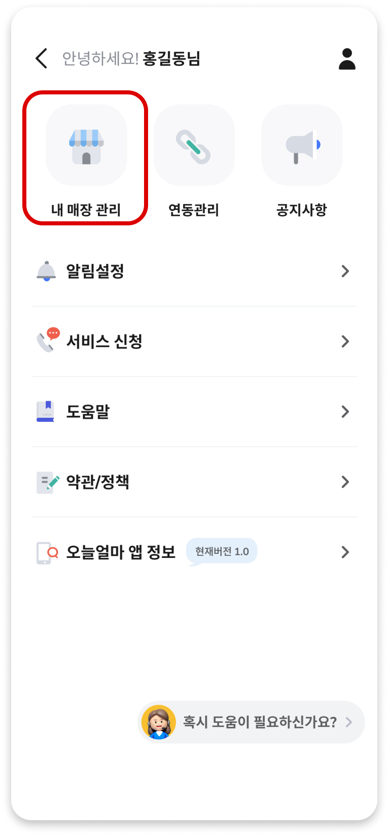 (2) 설정 리스트 내 [내 매장 관리] 버튼 클릭