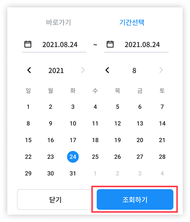 2) 상단에서 날짜를 클릭해 기간 검색 조건을 설정합니다.