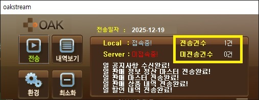 우측의 미전송건수가 조회되지 않는 매출건수입니다.