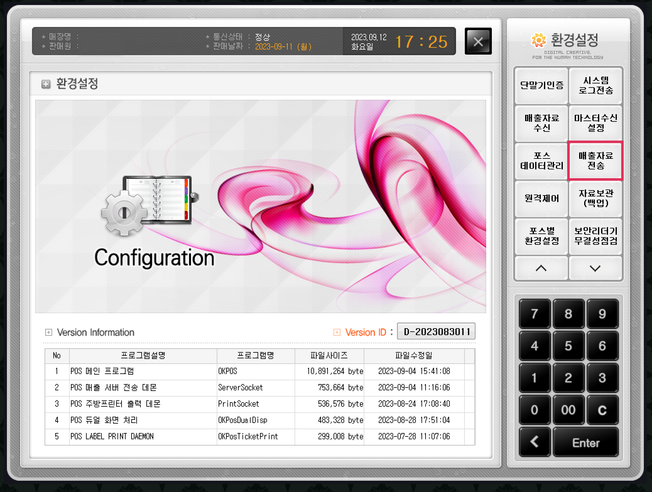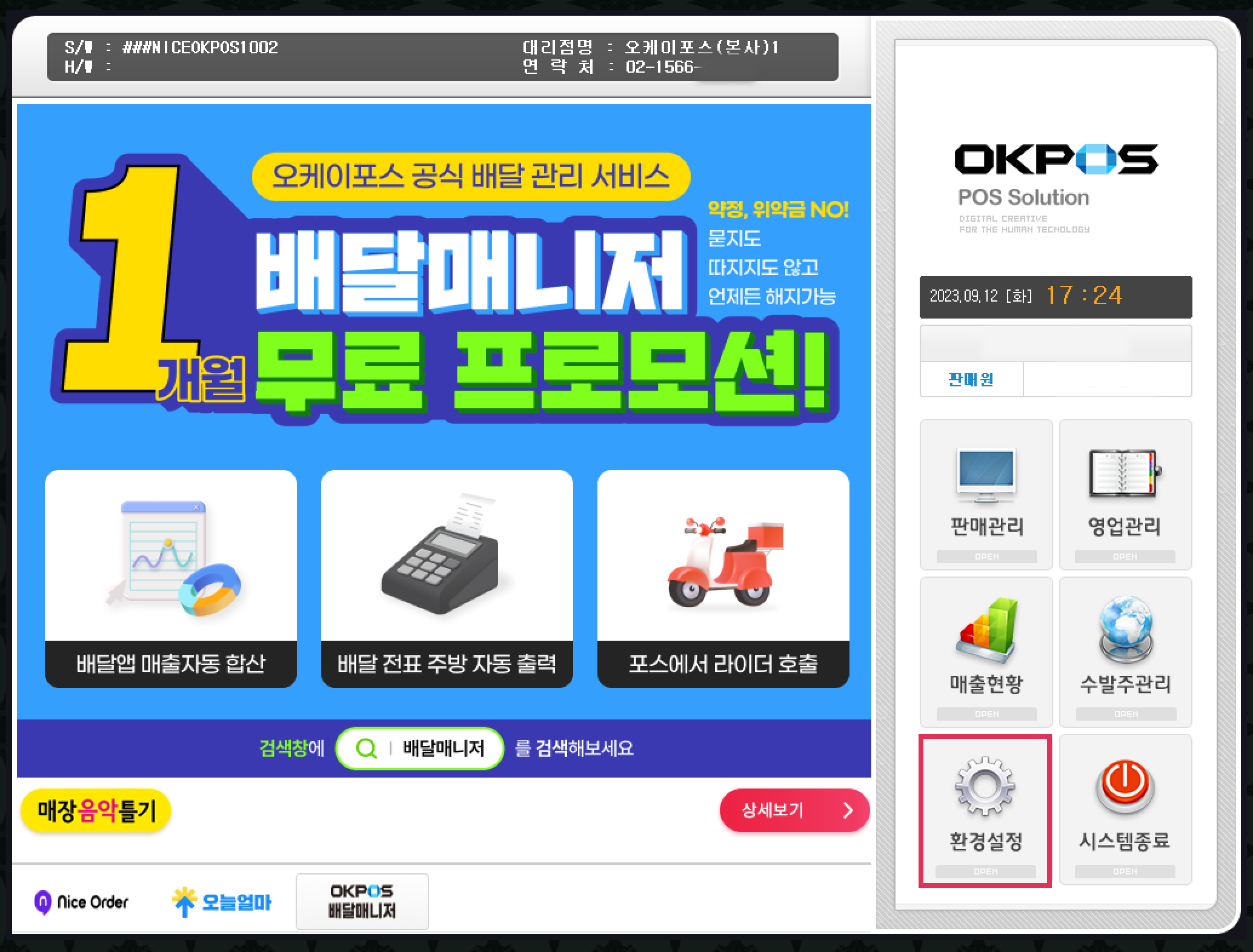 1) 포스 프로그램에서 [환경설정]을 클릭합니다.