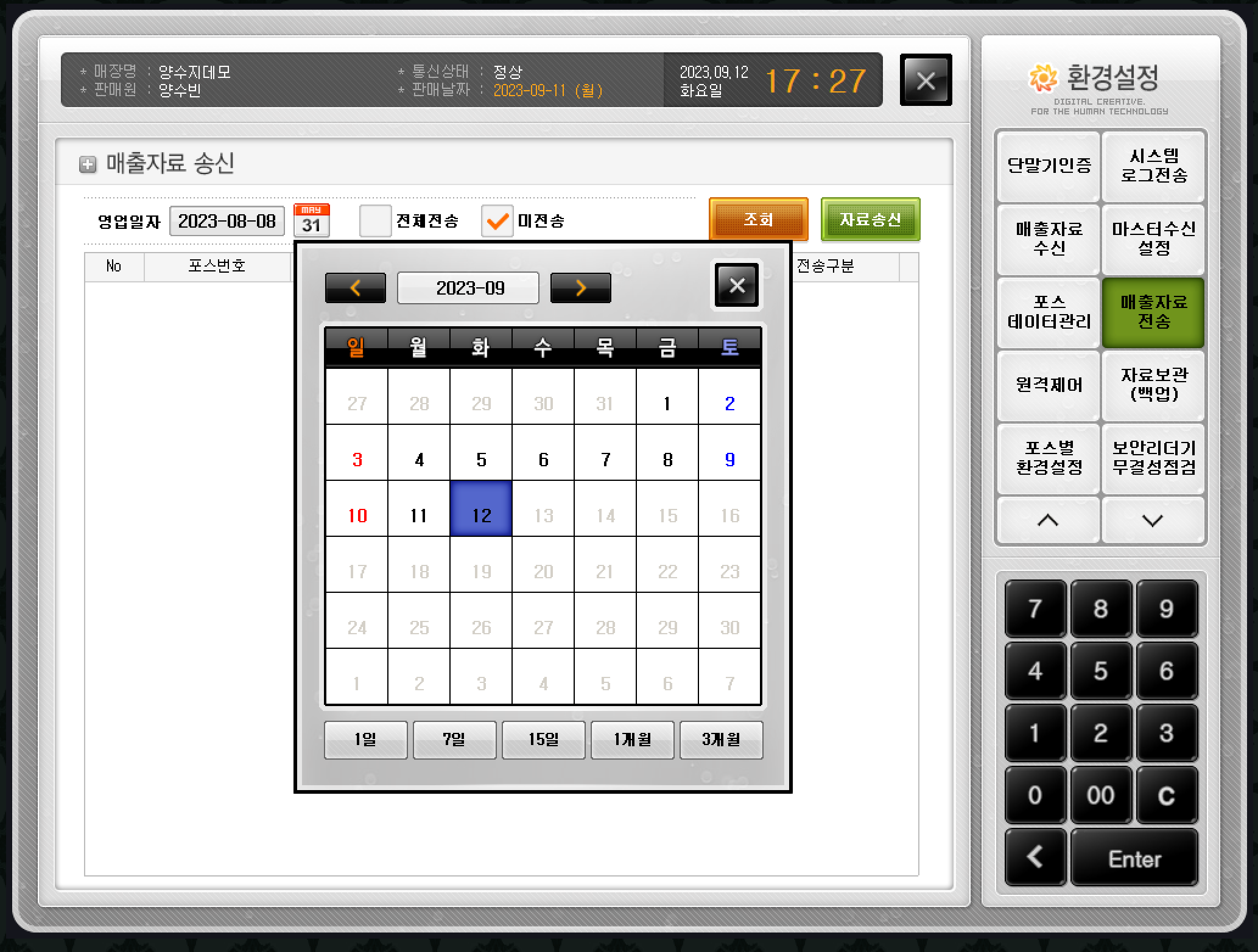 이 방법은 포스기나 매장의 인터넷 연결이 잠시 불안정할 때 수동으로 매출 데이터를 전송하는 과정입니다. 매 번 수동으로 해주실 필요가 없고, 일시적으로 매출이 안보일 때 즉각적으로 해결할 수 있는 방법입니다.