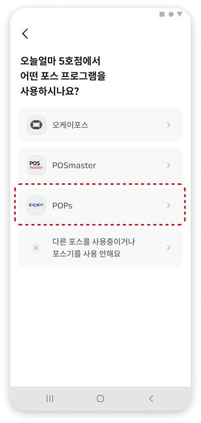 포스 연동은 반드시 팝스 영업정보시스템(POPs ASP)에 등록된 매장 정보, 대표자 정보가 일치해야만 진행할 수 있습니다.