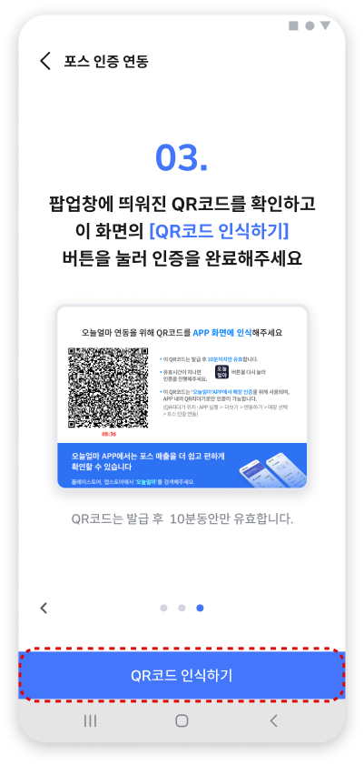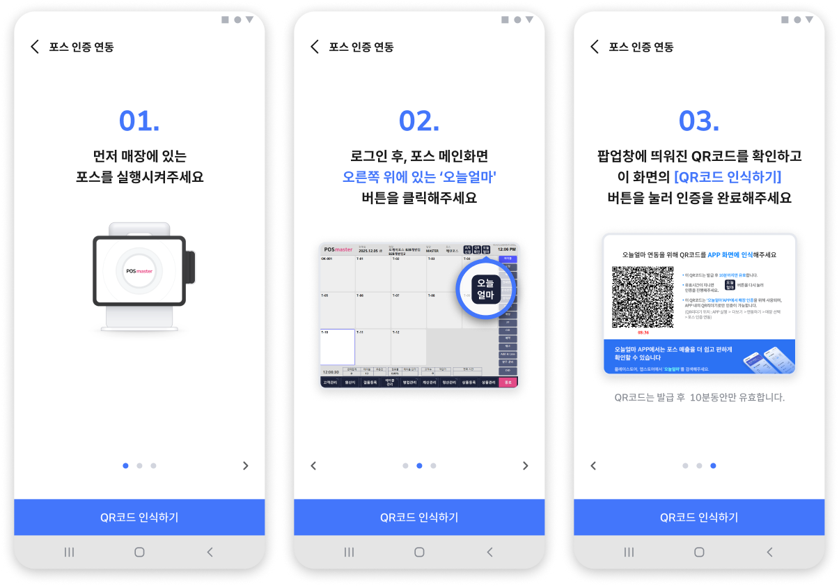 포스인증 연동 : 매장에 설치된 포스 화면에 QR코드를 발급받아 인증하여 연동