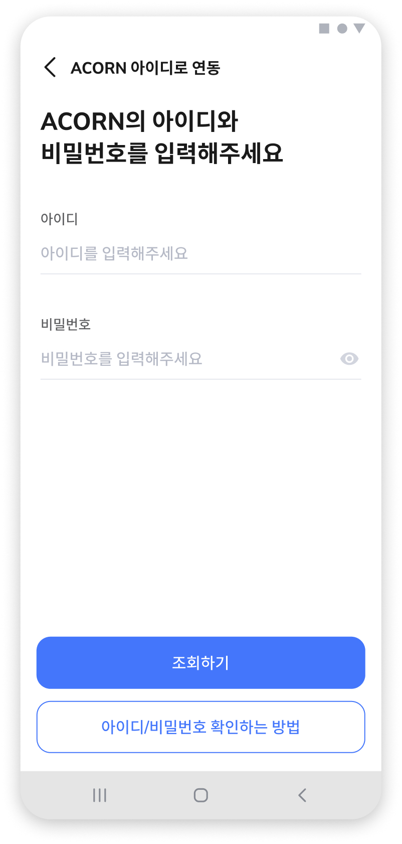 (2) ACORN에 등록된 아이디와 비밀번호를 입력하고 [조회하기] 버튼을 눌러주세요.