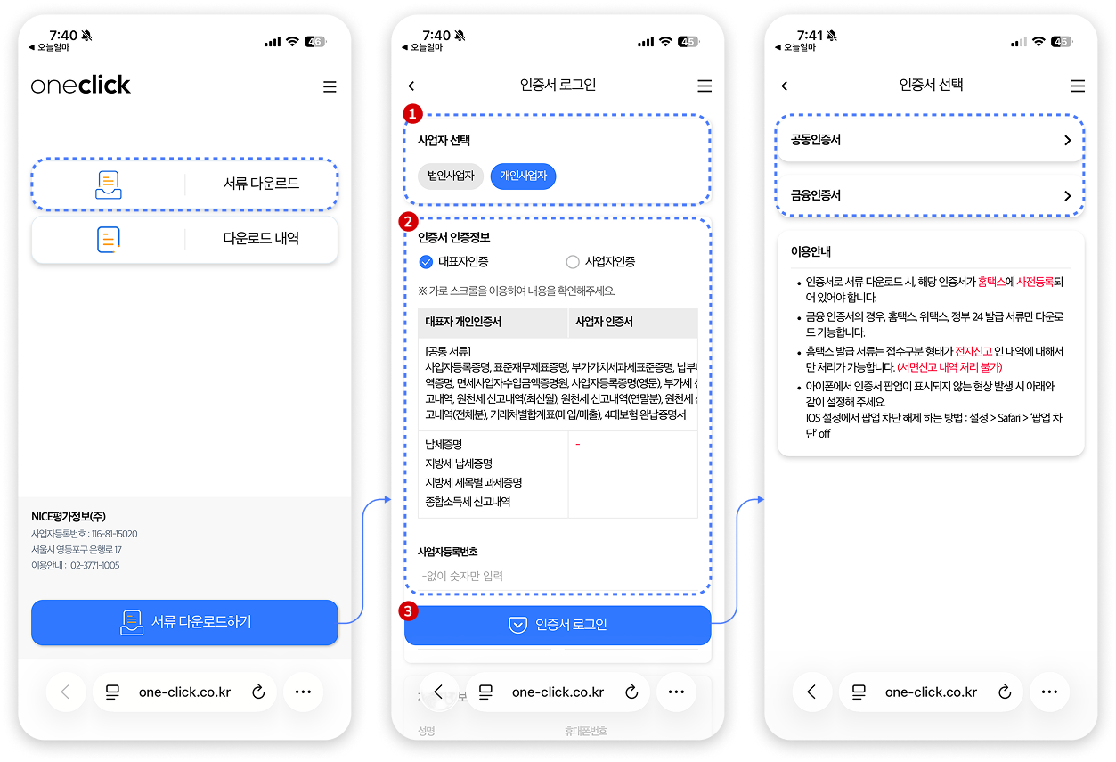 [์๋ฅ ๋ค์ด๋ก๋ํ๊ธฐ] ํด๋ฆญ โ 1)์ฌ์ ์์ ํ 2)์ธ์ฆ์ ์ธ์ฆ์ ๋ณด ์ ๋ ฅ 3)์ธ์ฆ์ ๋ก๊ทธ์ธ ํด๋ฆญ โ ์ธ์ฆ์ ์ ํ ํ ์ธ์ฆ ์งํ