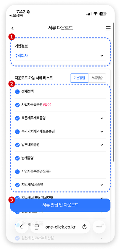 1) ๊ธฐ์ ์ ๋ณด ์ ํ โ 2) ๋ค์ด๋ก๋ ์๋ฅ ์ ํ โ 3) ์๋ฅ ๋ฐ๊ธ ๋ฐ ๋ค์ด๋ก๋ ๋ฒํผ ํด๋ฆญ