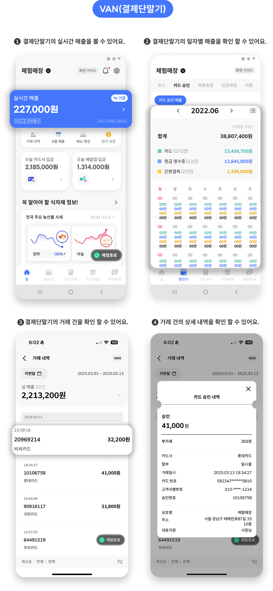 ๋งค์ฅ ๋ฑ๋ก, ๋งค์ถ ์ฐ๋์ ํ์ง ์์๋!ํฌ์ค / VAN(๊ฒฐ์ ๋จ๋ง๊ธฐ) / ์นด๋ / ๋ฐฐ๋ฌ์ฑ / ํ๊ธ ๋งค์ถ ์กฐํ ๊ธฐ๋ฅ์ ์ง์ ์ฌ์ฉํด ๋ณผ ์ ์๋์ค๋์ผ๋ง ์ฒดํํ๊ธฐ