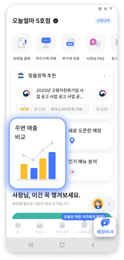 ์ฐ๋ฆฌ ๊ฐ๊ฒ ๋งค์ถ๋งํผ ๊ผญ ํจ๊ป ๋ด์ผ ํ ์ฃผ๋ณ ๊ฐ๊ฒ์ ๋งค์ถ ํํฉ์ ์ค๋์ผ๋ง์์ ์กฐํํด ๋ณด์ธ์.