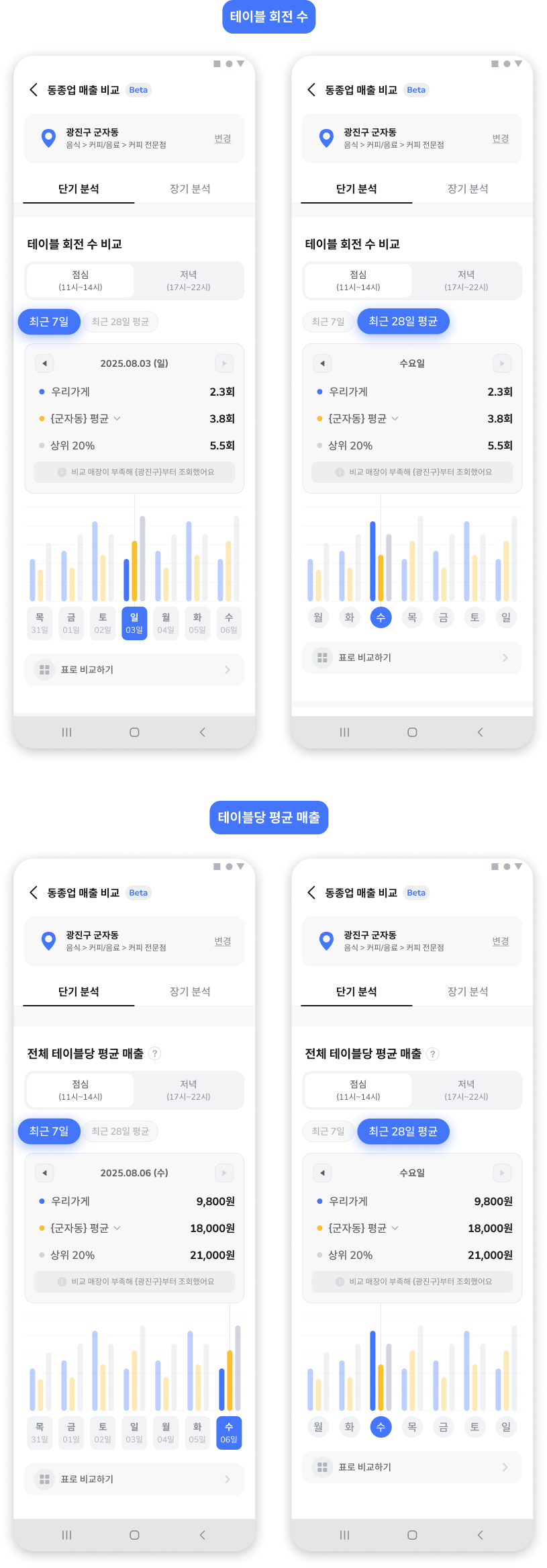 ์ ์ฒด ํ ์ด๋ธ๋น ํ๊ท ๋งค์ถ ๋น๊ต : ์ฐ๋ฆฌ ๊ฐ๊ฒ์ ์ฃผ๋ณ ์๊ถ์ ์ ์ฒด ํ ์ด๋ธ๋น ํ๊ท ๋งค์ถ์ ๋น๊ตํ ์ ์์ด์.