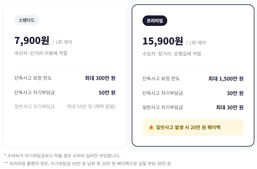 ๋ณด์ฅ ์ฑ๊ฒฉ | ๋จ๋ ์ฌ๊ณ ๋ณด์ + ์๊ธฐ๋ถ๋ด๊ธ ์ง์ | ๋์ธ/๋๋ฌผ/์์ฐจ (์ผ๋ฐ ์ฌ๊ณ ) |