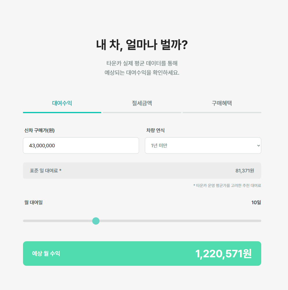 ๋ณ๋์ ๊ฐ์ ์์ด๋ ์ง๊ธ ๋ฐ๋ก ๋ด ์ฐจ๋์ ๋๋ต์ ์ธ ์์ต์ ์๋ฎฌ๋ ์ด์ ํด ๋ณผ ์ ์์ต๋๋ค.