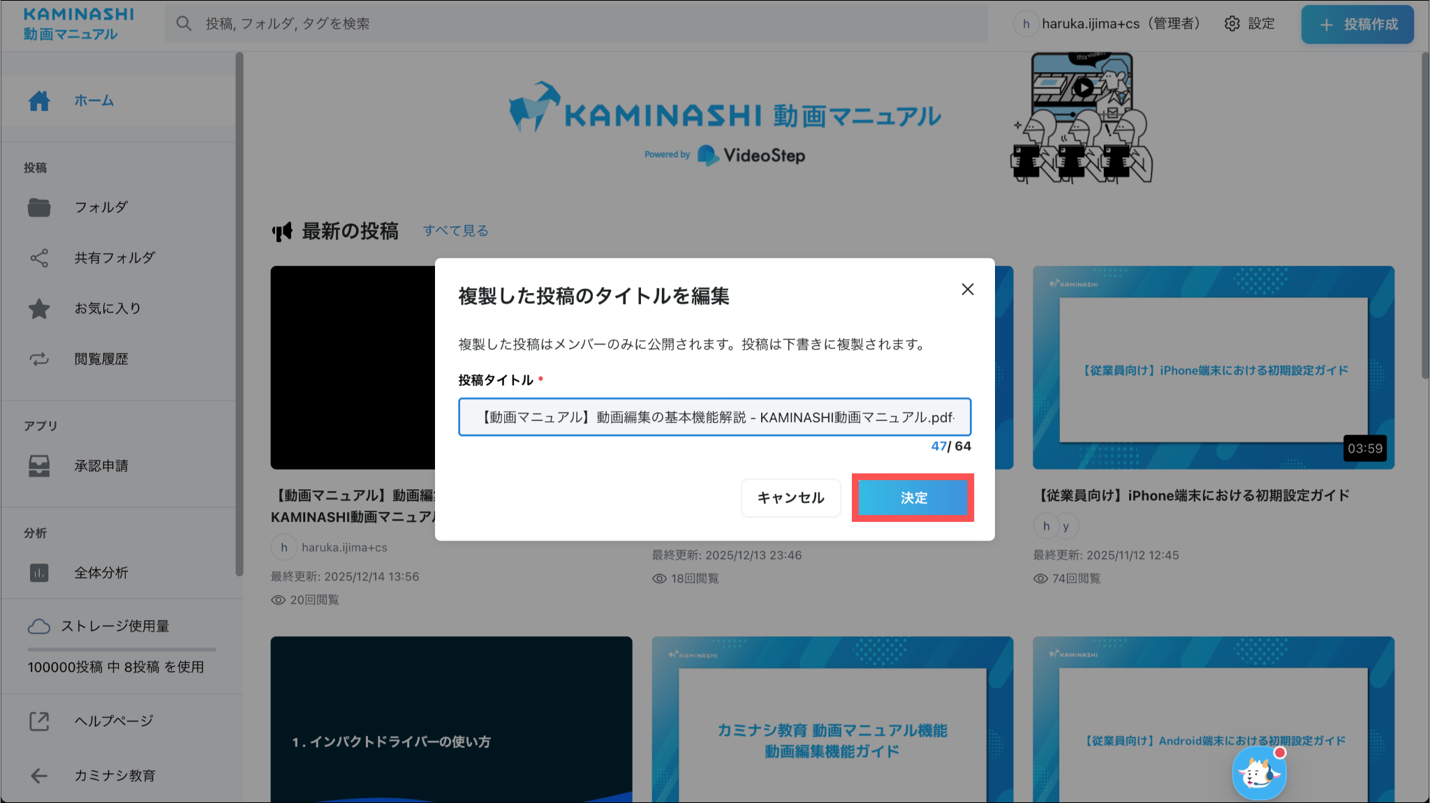 複製されたドキュメント投稿は「下書き」に保存されます。
