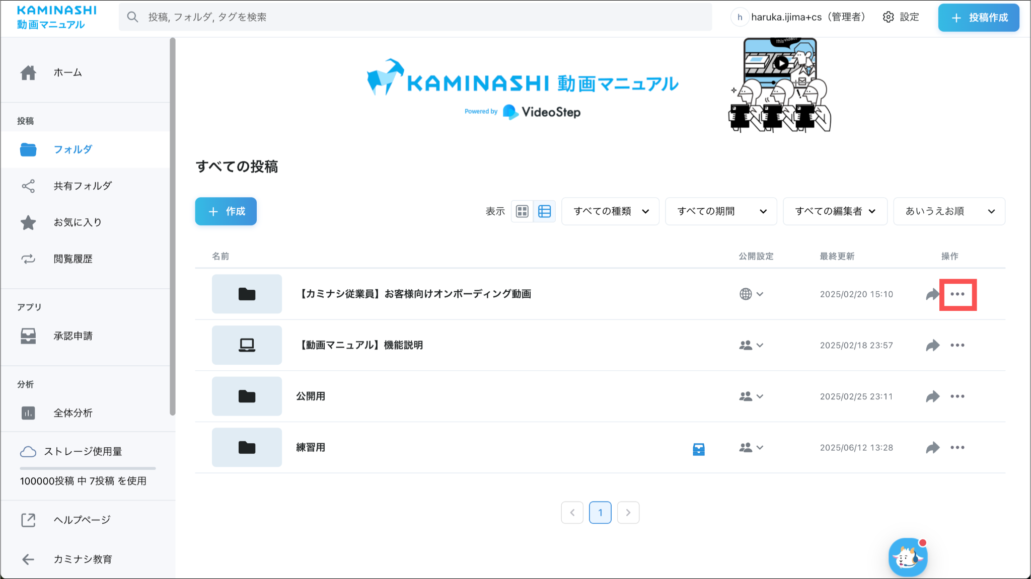 2.「フォルダ」を開き、編集するフォルダの「⋯」を押す