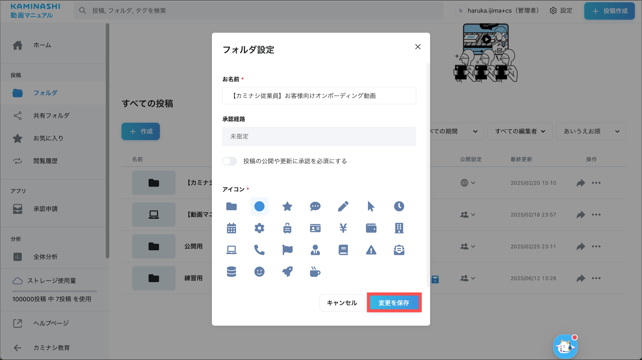 フォルダ名や承認経由、アイコンを変更する際の手順をご紹介します。