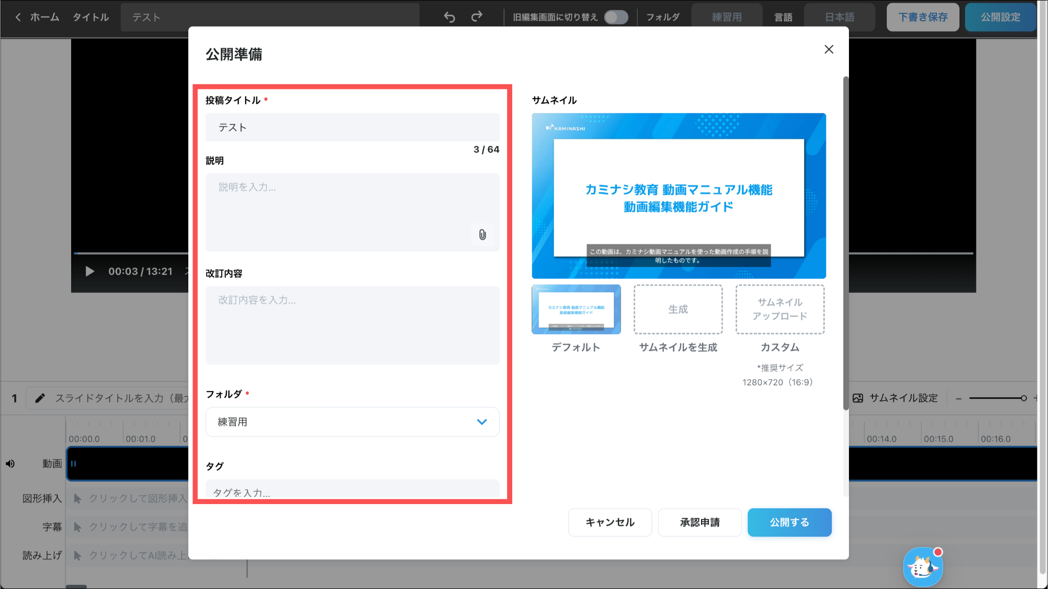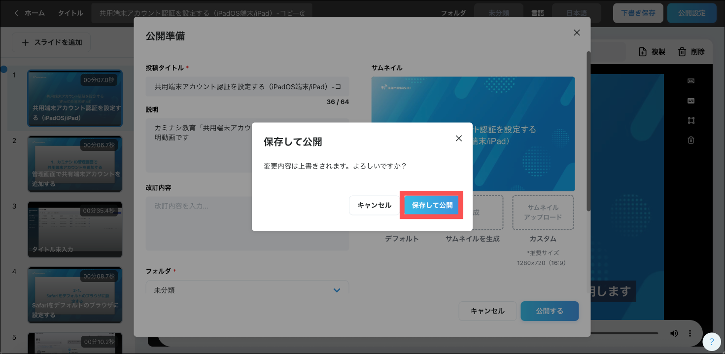 任意のサムネイルに設定する場合は、「サムネイルをアップロード」を押しファイルを選択します。