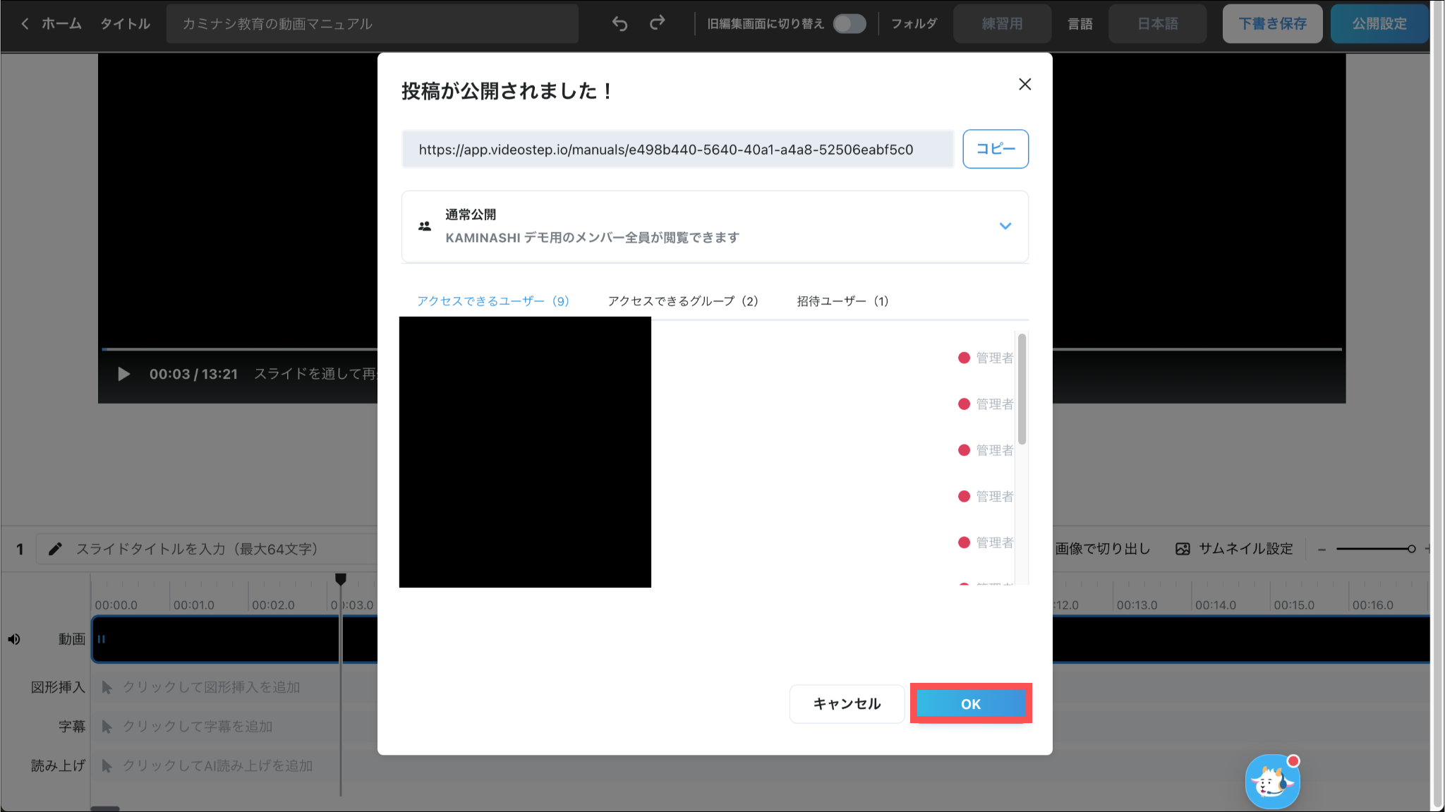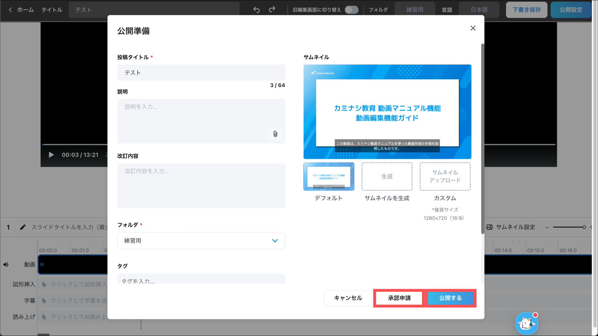 承認申請を押した場合は、コメントを入力し「OK」を押します。