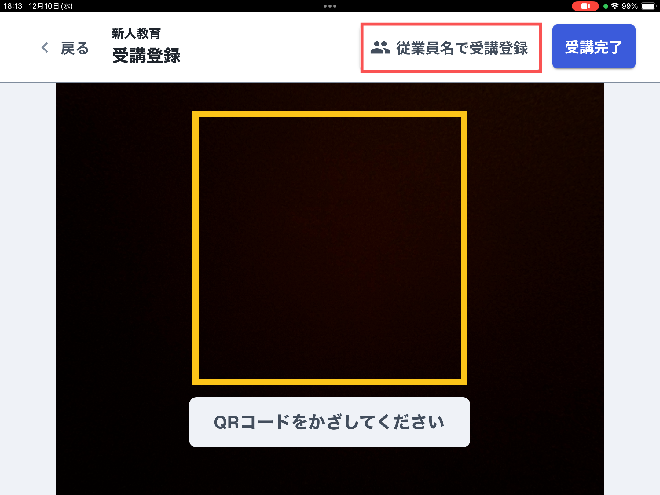 なお、QRコードの読み取りはインカメラ(タブレット端末の内側に搭載されたカメラ)にて行います。