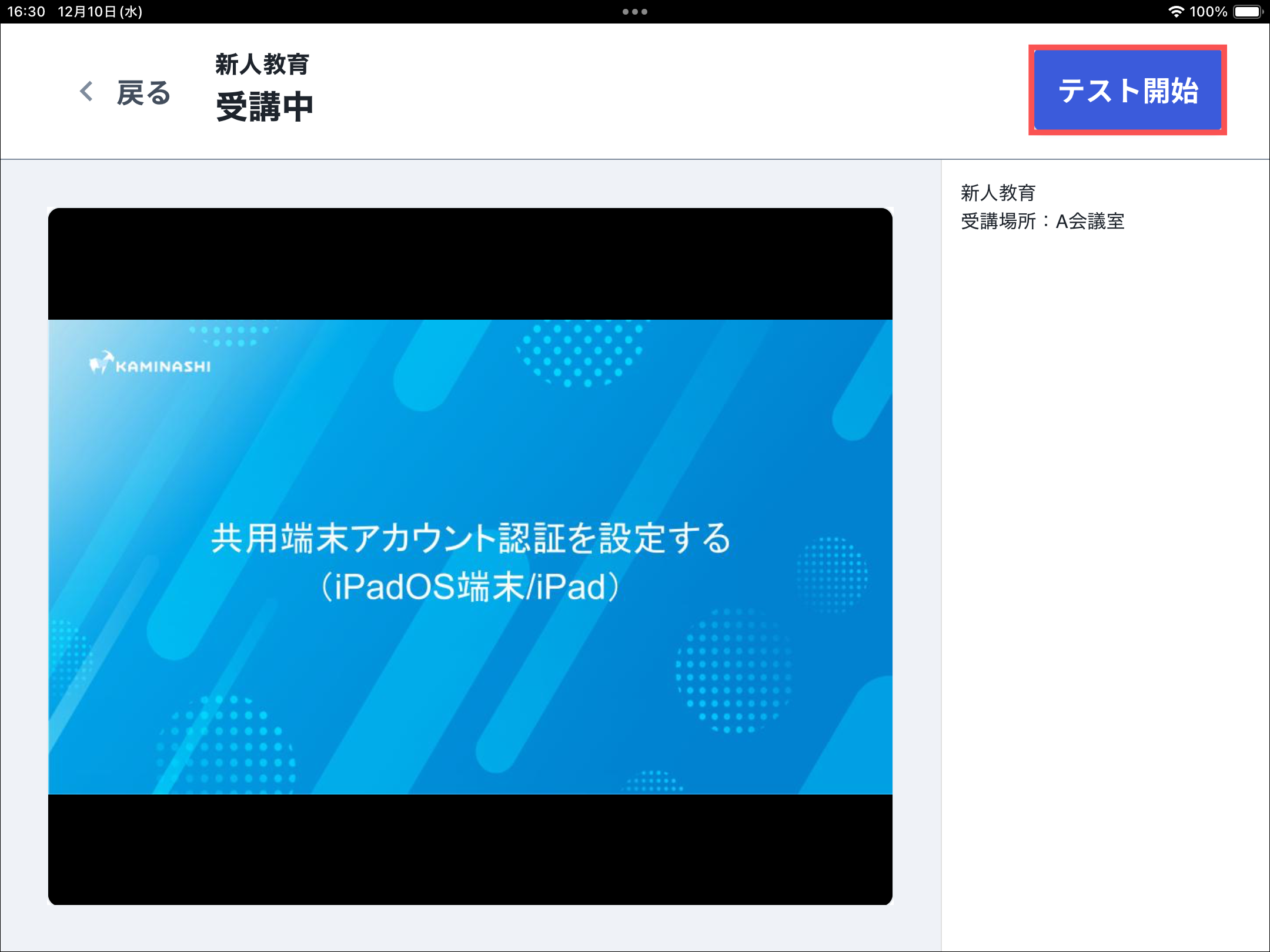 「〇〇(ユーザー名)さんの受講登録が完了しました」と表示され、受講状況が「受講済」となります。