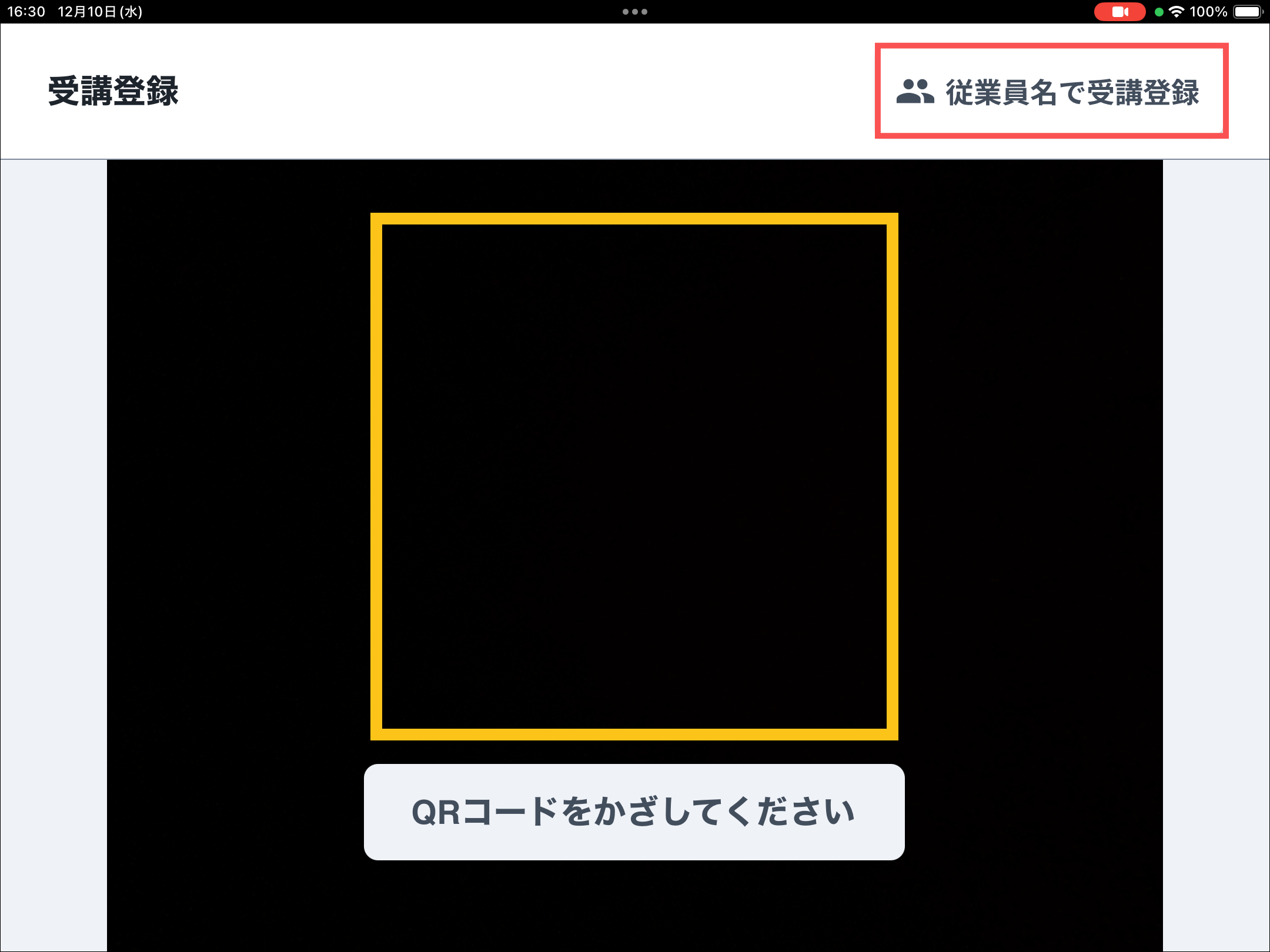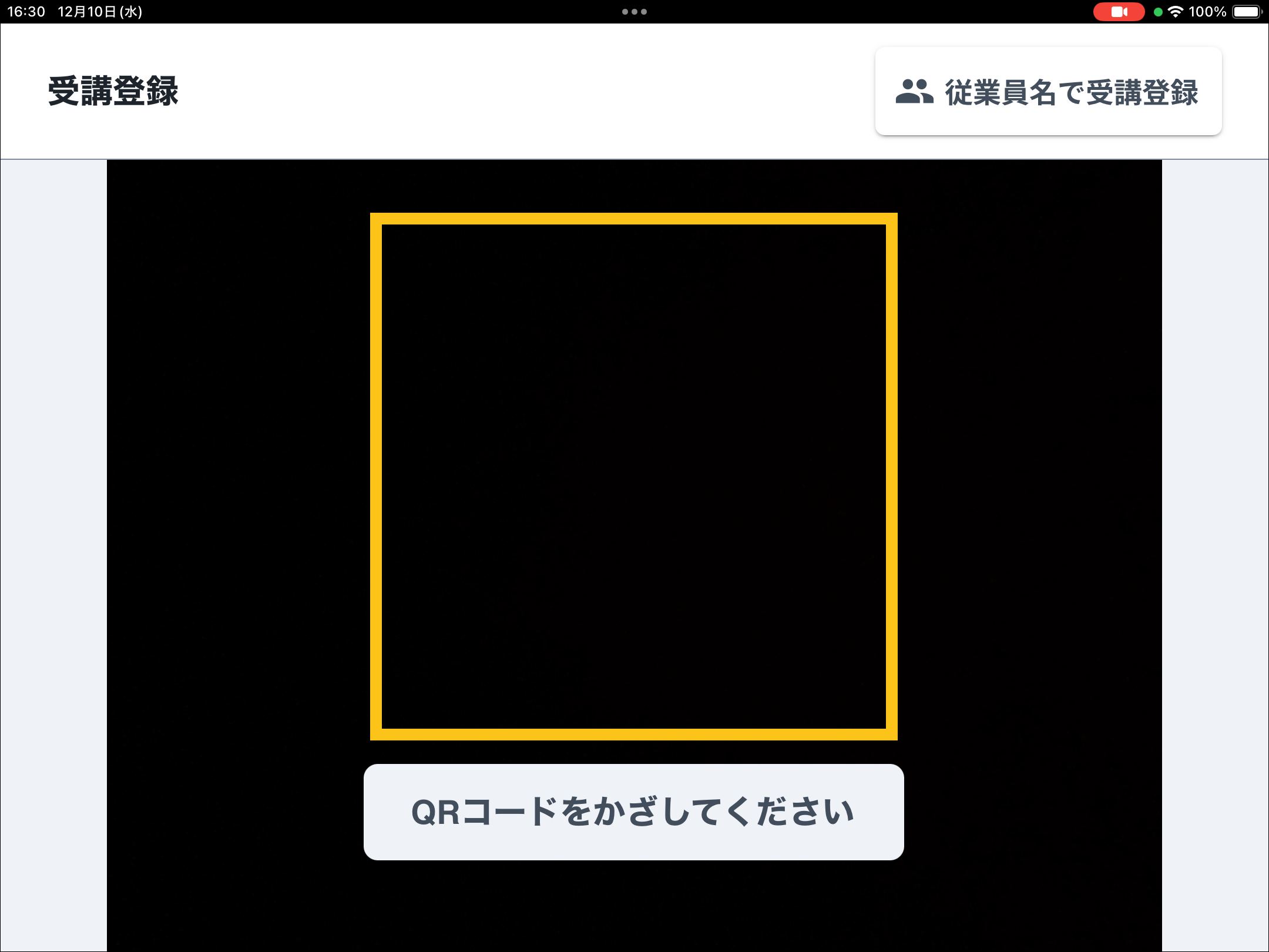 なお、QRコードの読み取りはインカメラ(タブレット端末の内側に搭載されたカメラ)にて行います。