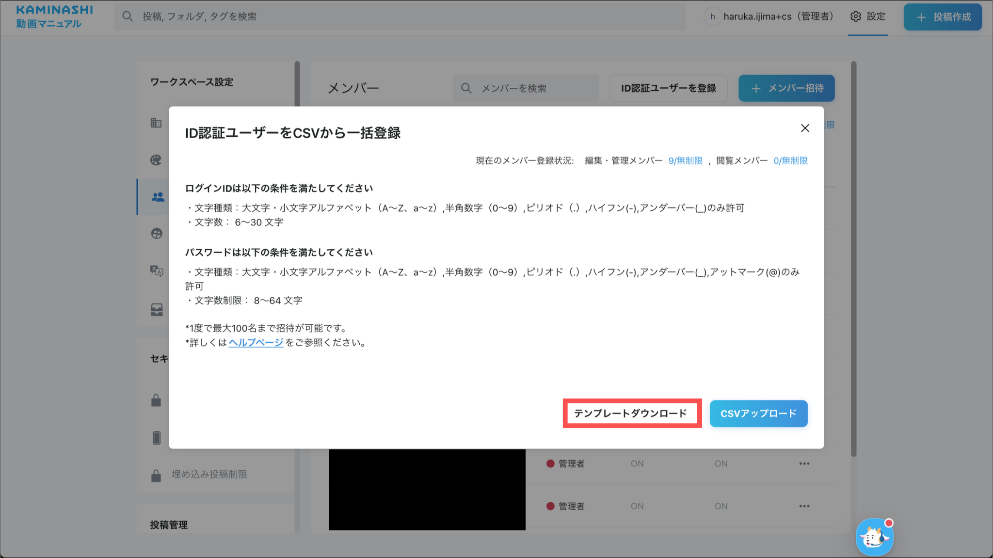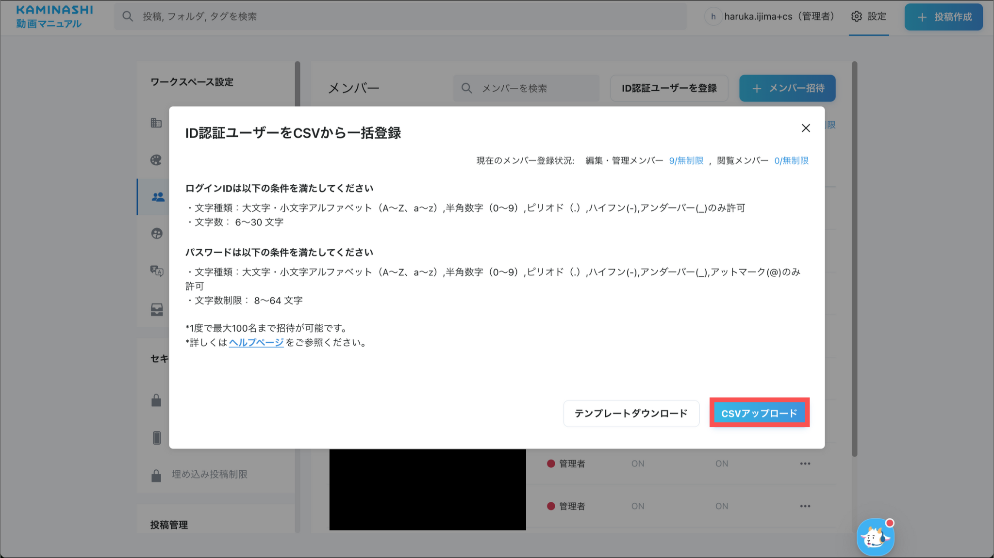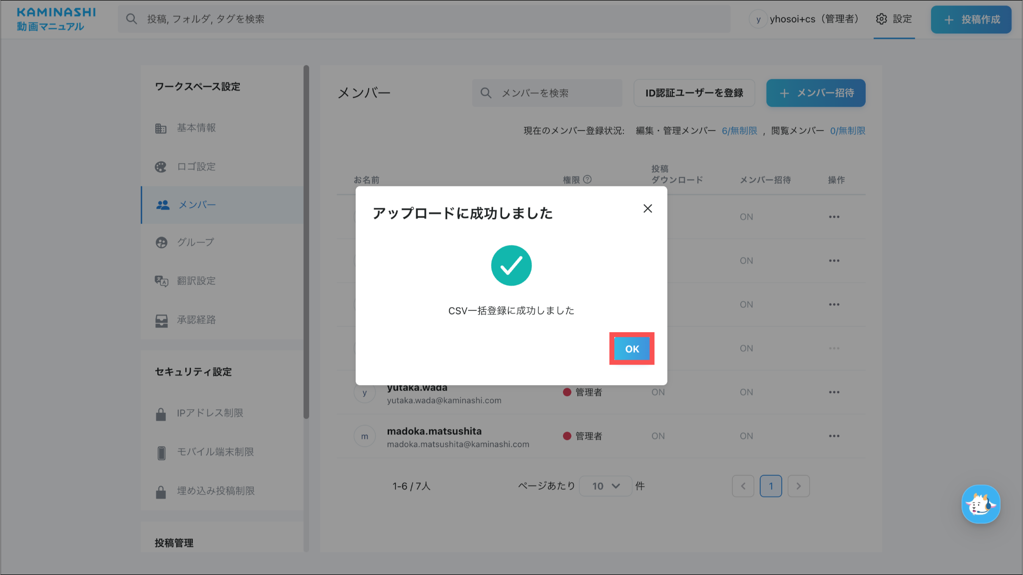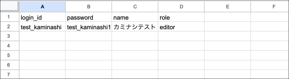※roleが日本語表記だとアップロード時にエラーが出ます。必ず英語表記で入力してください。
