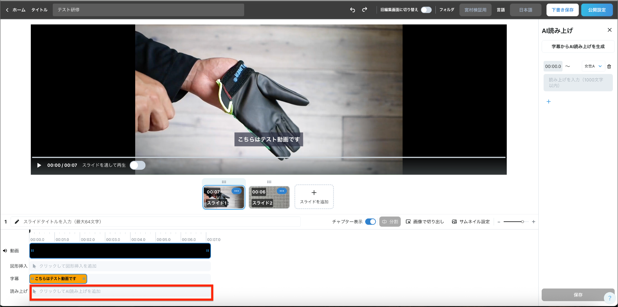 テキストが正しく読み上げがられない場合は、該当箇所を修正してください。