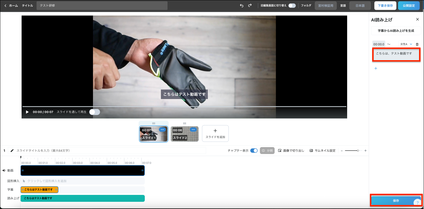 テキストを編集し、「保存」を押すと編集結果が保存されます。