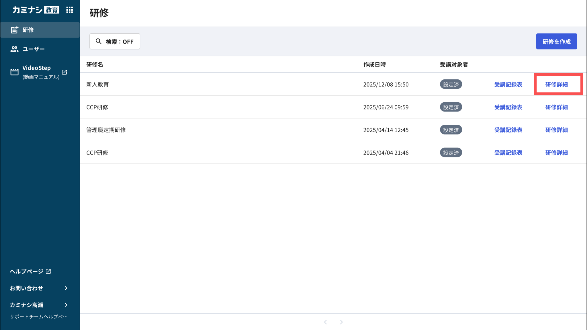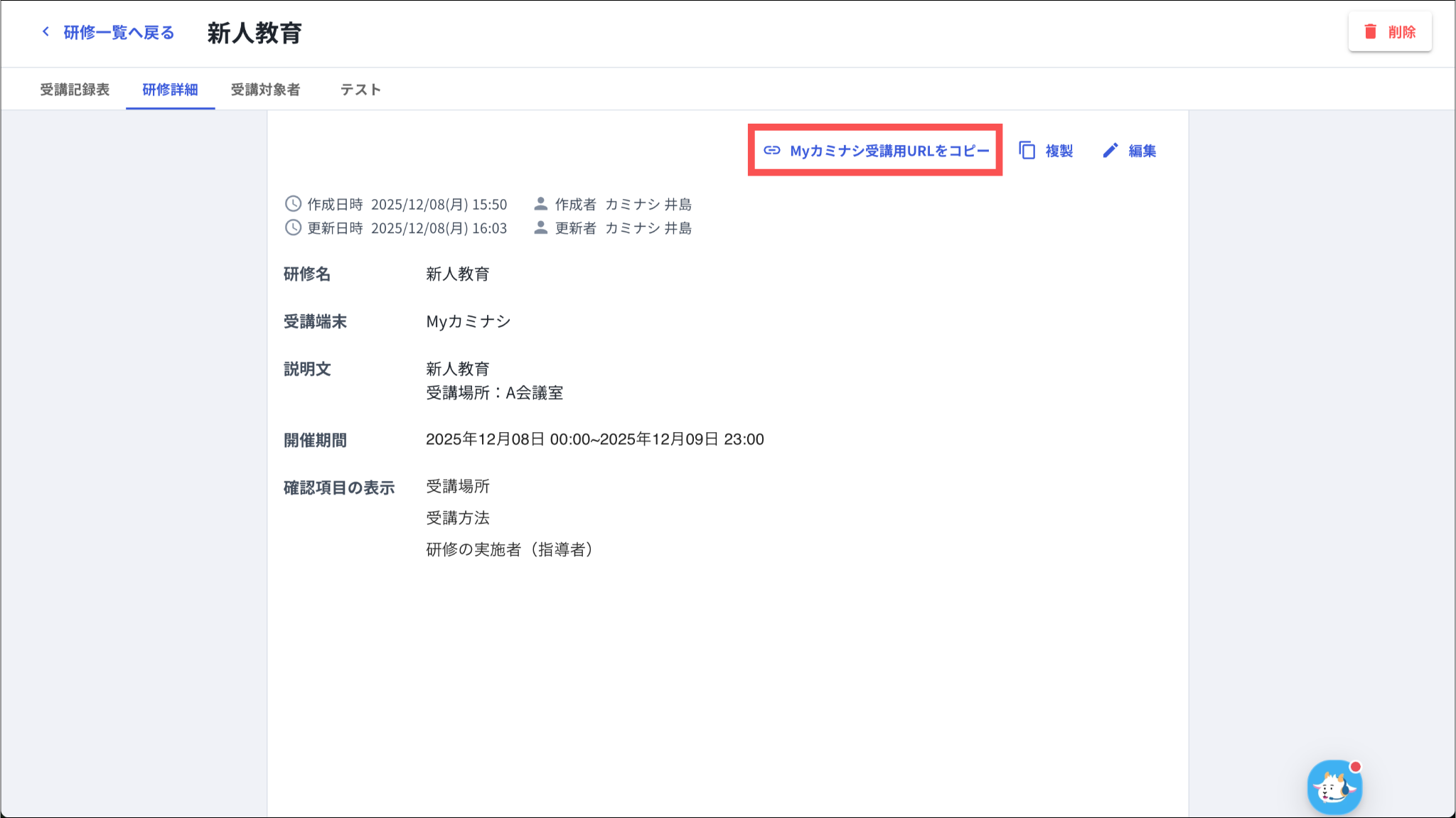編集方法については「研修を編集する」をご参照ください。