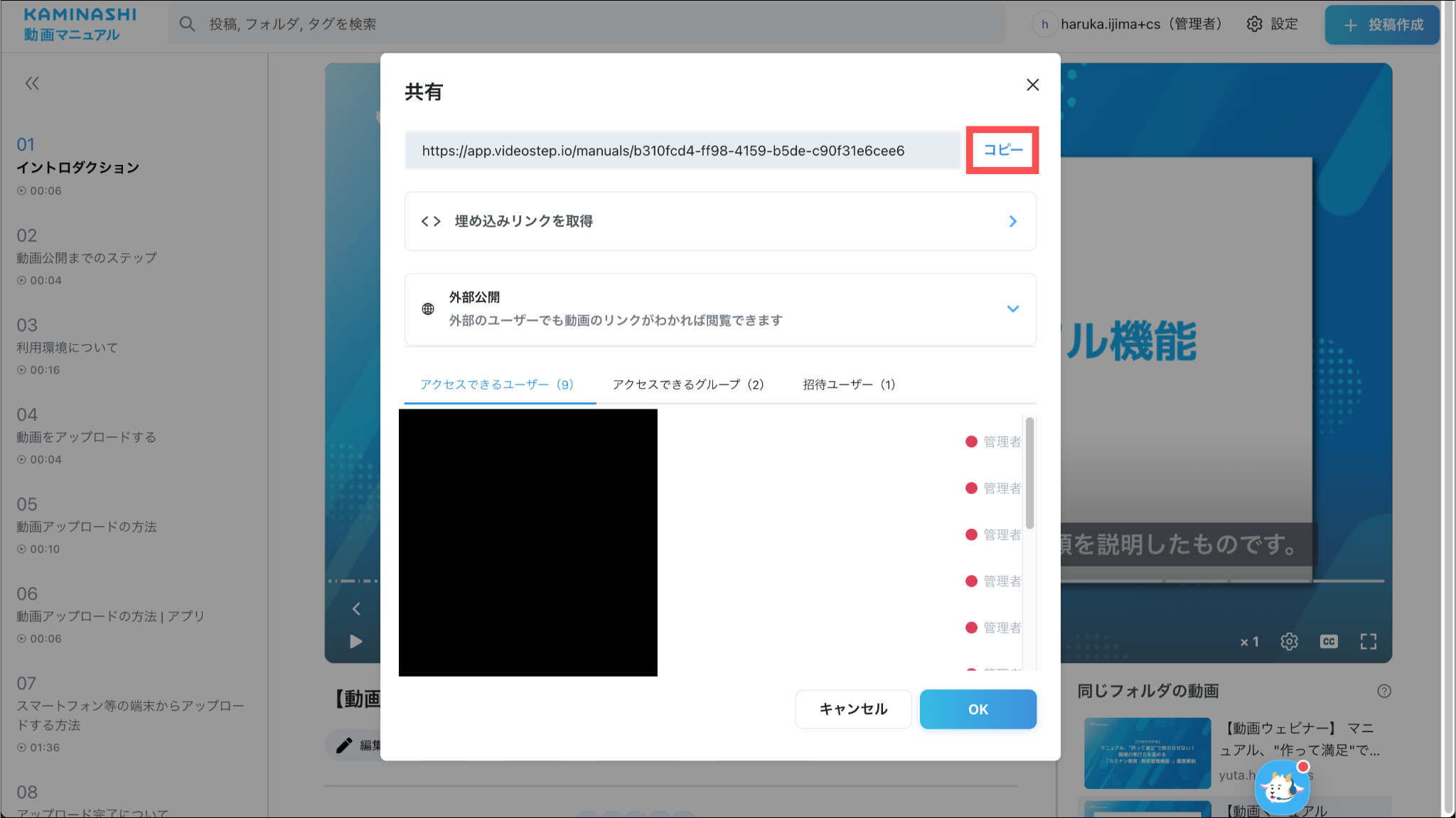 1.カミナシ動画マニュアルにログインする2.「ホーム」または「フォルダ」を開き、URLを発行する投稿を押す3.「共有」を押す4.「コピー」を押す発行したURLはカミナシ教育で作成した「研修」に貼り付けてご利用ください。研修の作成方法については、「研修を作成する」をご参照ください。よくある質問は、こちらからご確認ください。