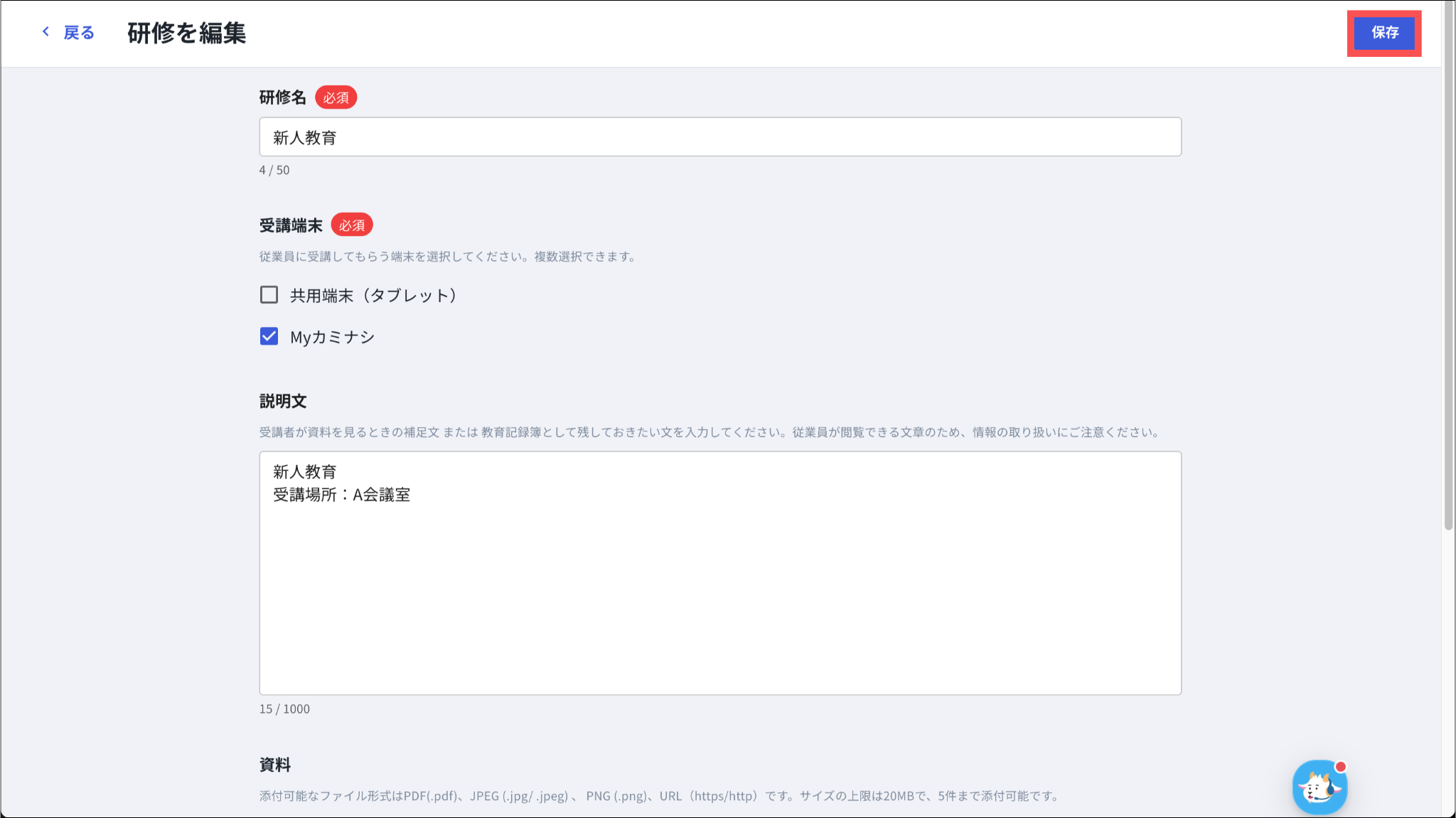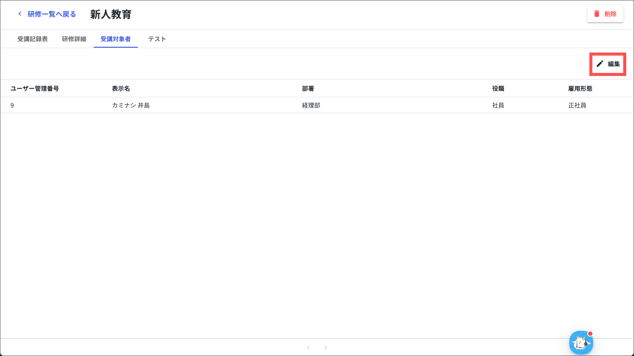 受講済のユーザーがいる場合、編集できません。