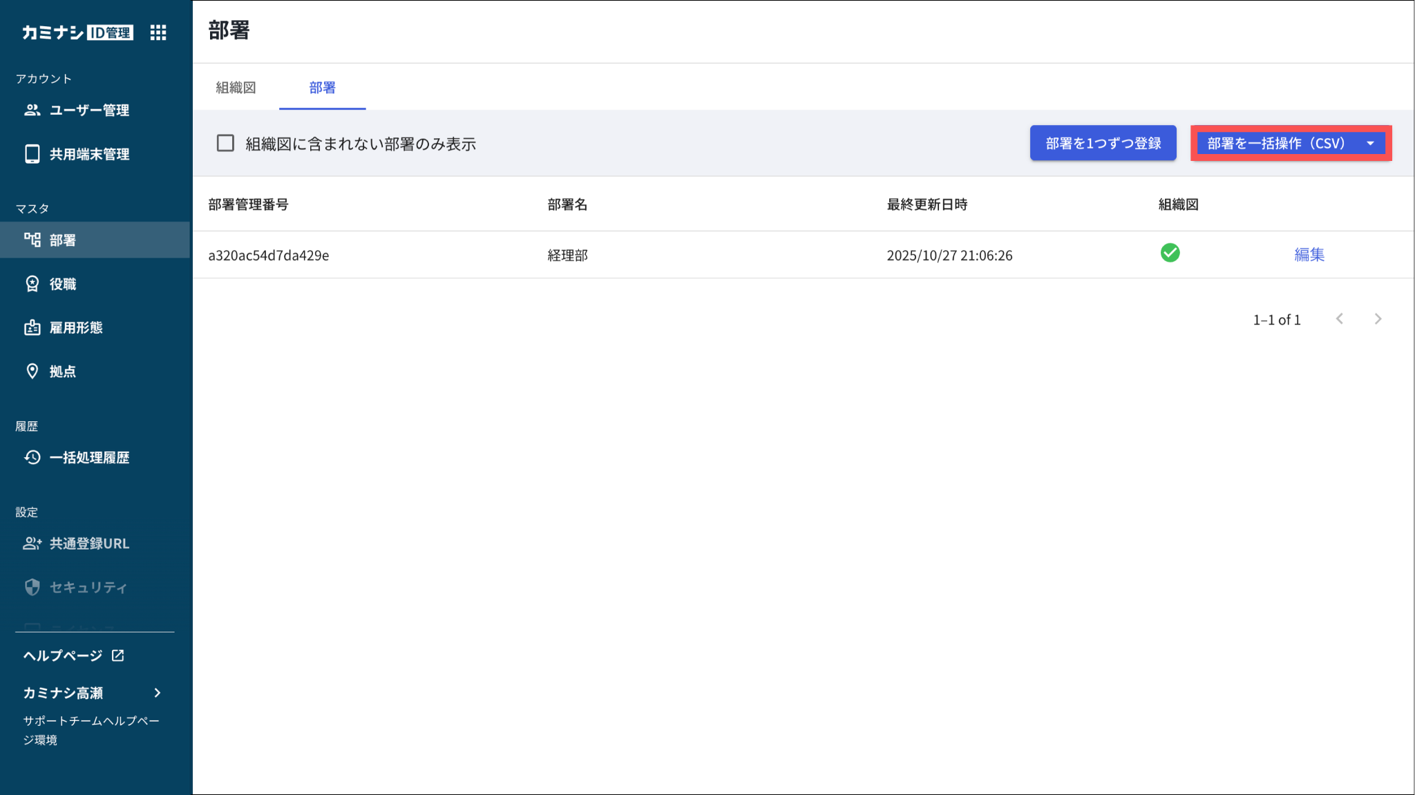 編集方法については「部署・役職・雇用形態・拠点を個別に編集する」をご参照ください。