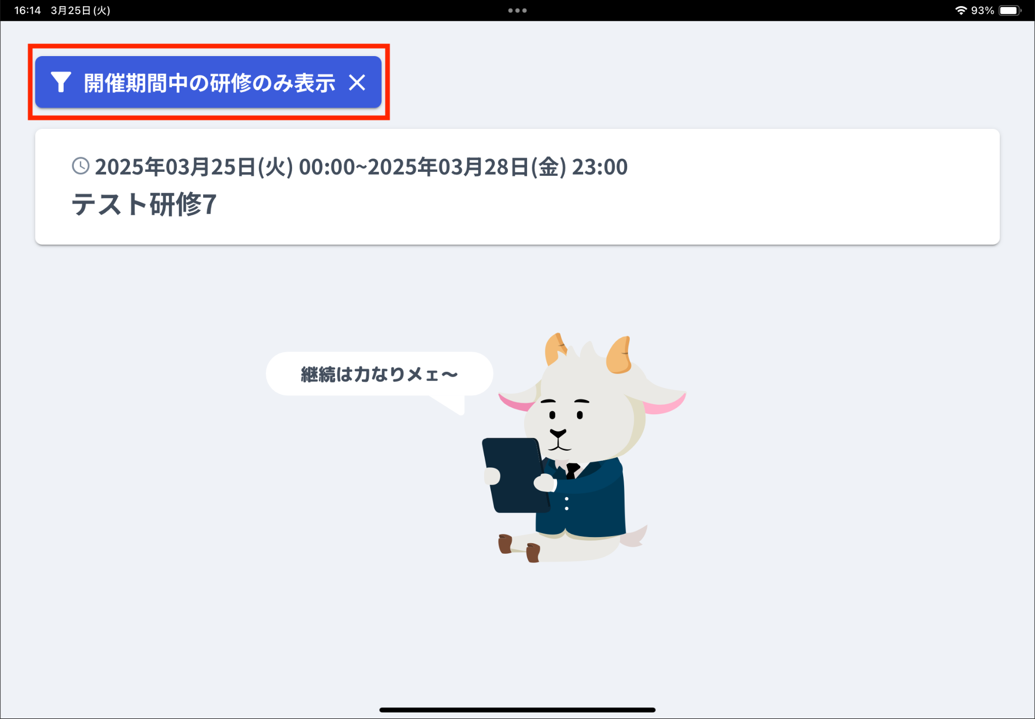 過去の研修や未来に設定した研修が非表示になるため、研修が探しやすくなります。