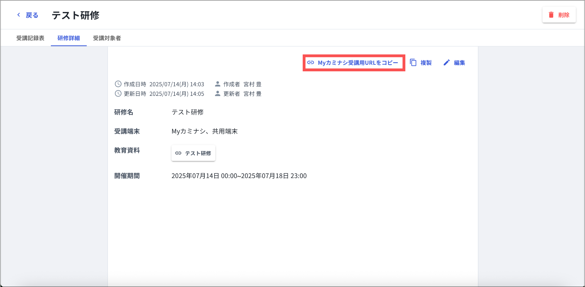 今回のアップデートにより、受講用URLをコピーできる機能が追加されました。