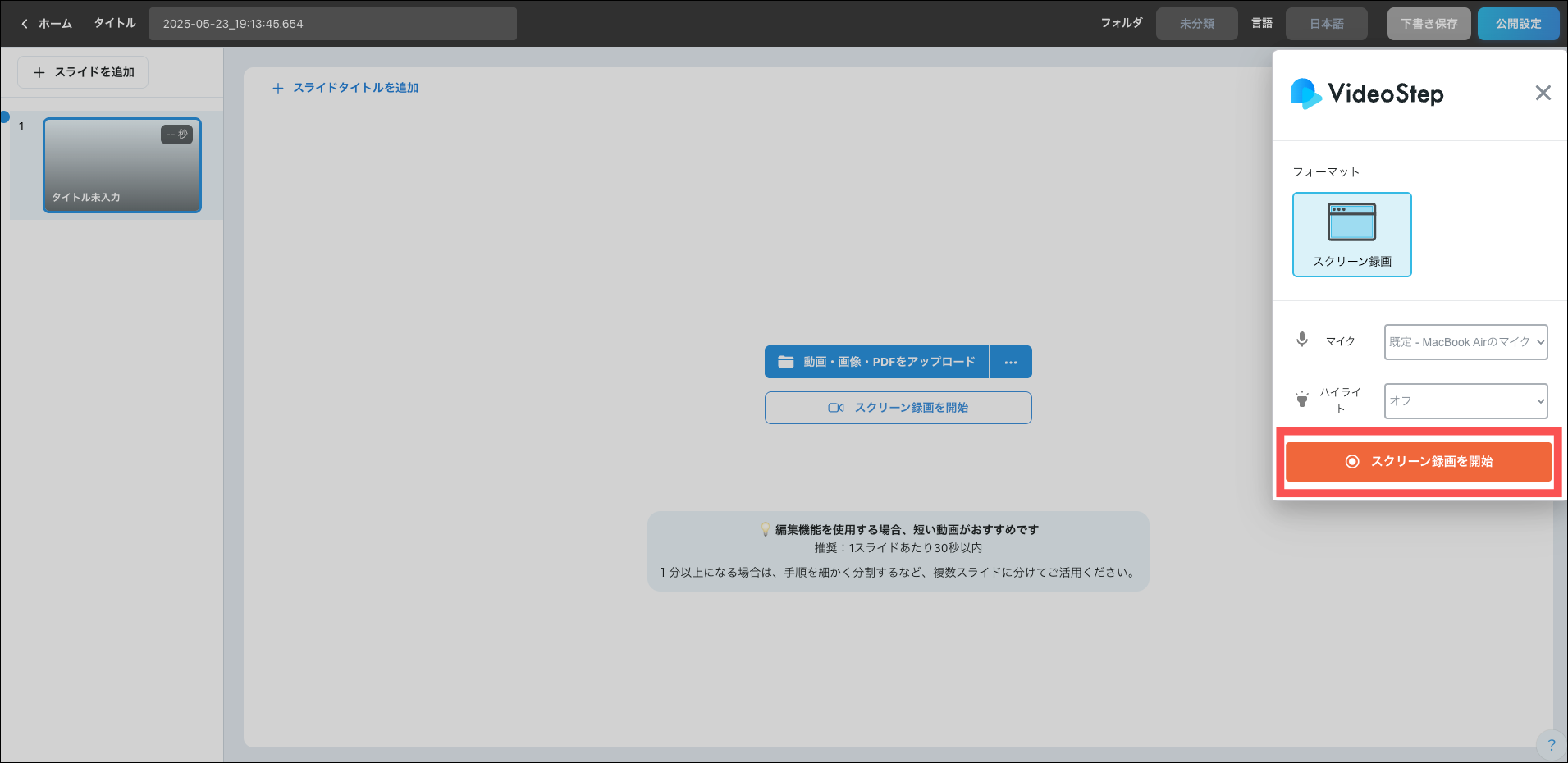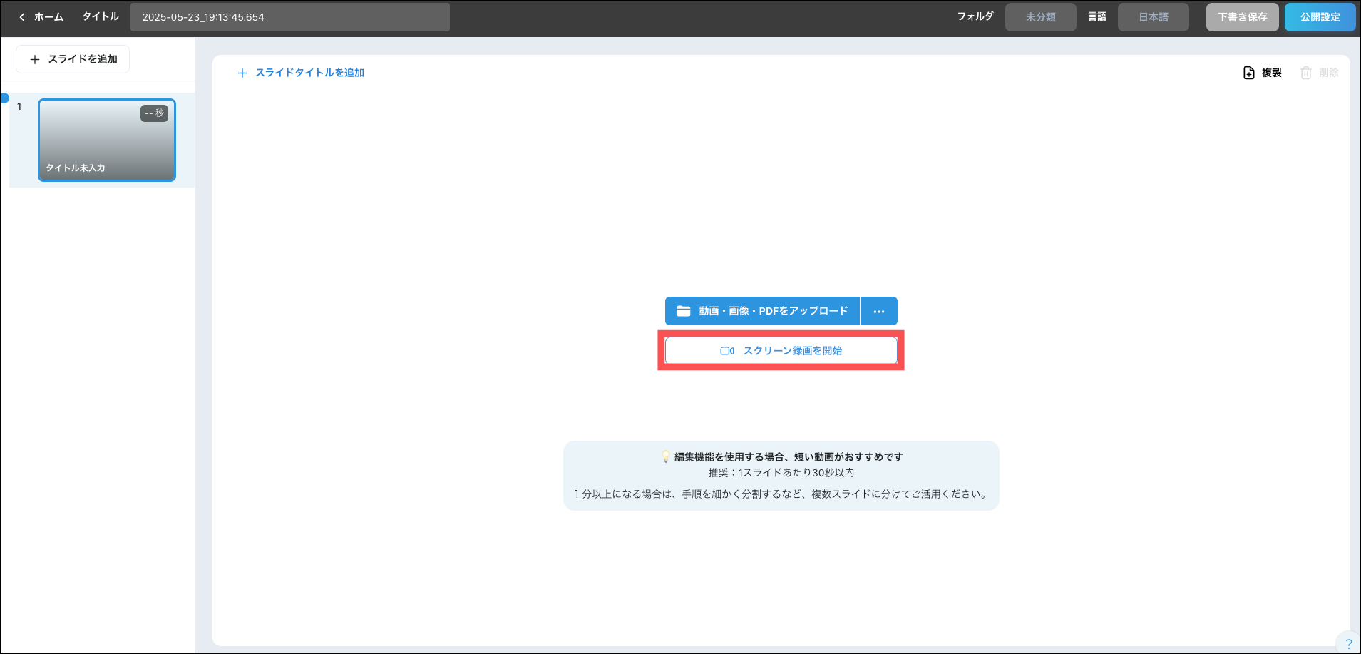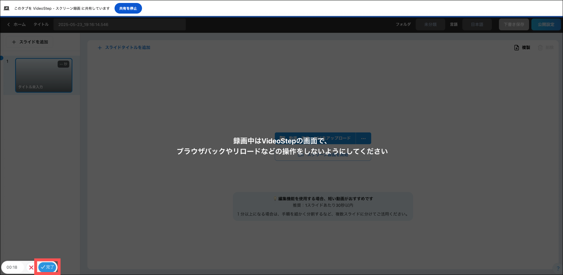 ※一度Chromeの拡張機能をインストールいただきますと、以降はこの対応は不要でスクリーン録画をご利用いただけます