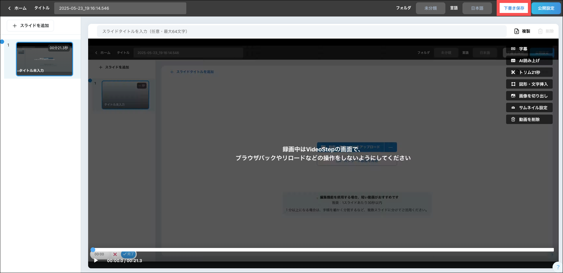 アップロードされたファイルを確認し、動画の編集や公開を行います。