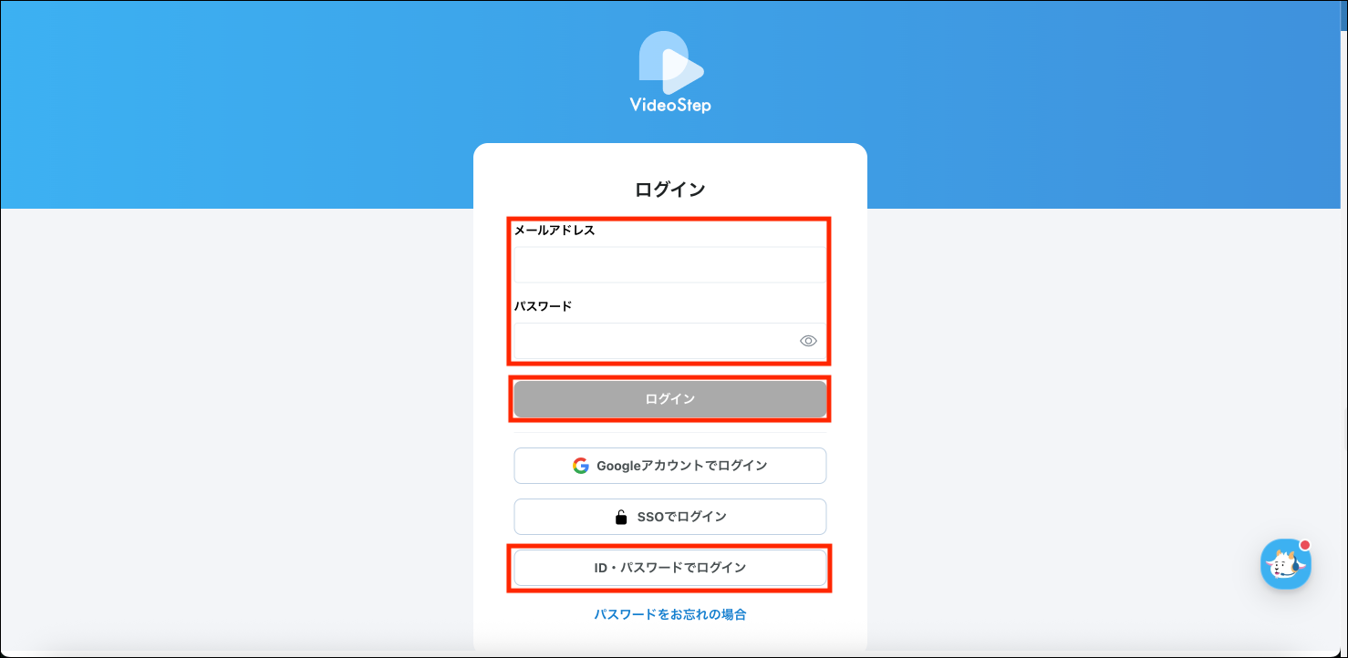 「メールアドレス」と「パスワード」を入力し、「ログイン」を押してください。