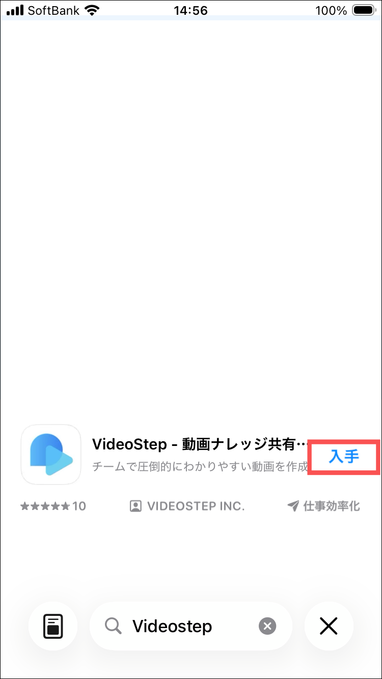 2.「videostep」と検索し、「入手」を押す