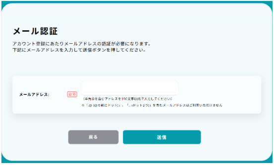 ※メールアドレスは最初に入れていただいたアドレスが表示されます。アカウント登録後に変更可能です。