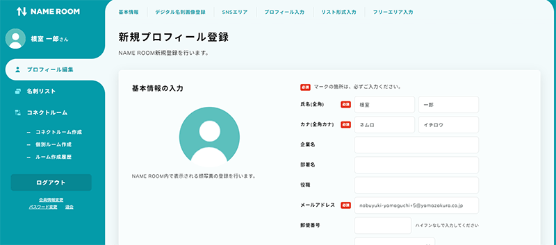 新規プロフィール登録をする│ヘルプ │デジタル名刺管理サービス│NAME ROOM(ネームルーム)