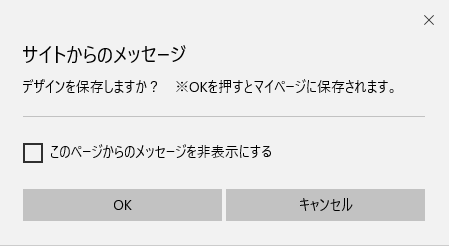 「デザインはマイページに保存されます。マイページに移動しますか?」のメッセージが出てくるので、 「OK」を押すと、データが保存され、マイページの「一時保存組版データ一覧画面」に遷移します。