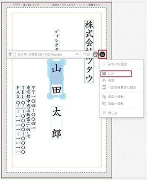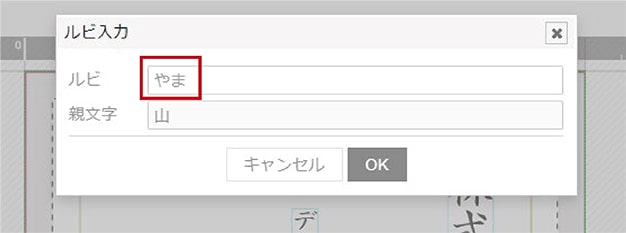 カスタマイズ編集画面では、入力した文字にルビ(フリガナ)をつけることができます。