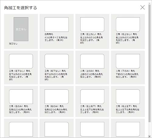 ※商品やデザインによって選択できる角加工は決まっておりますので、予めご確認ください。