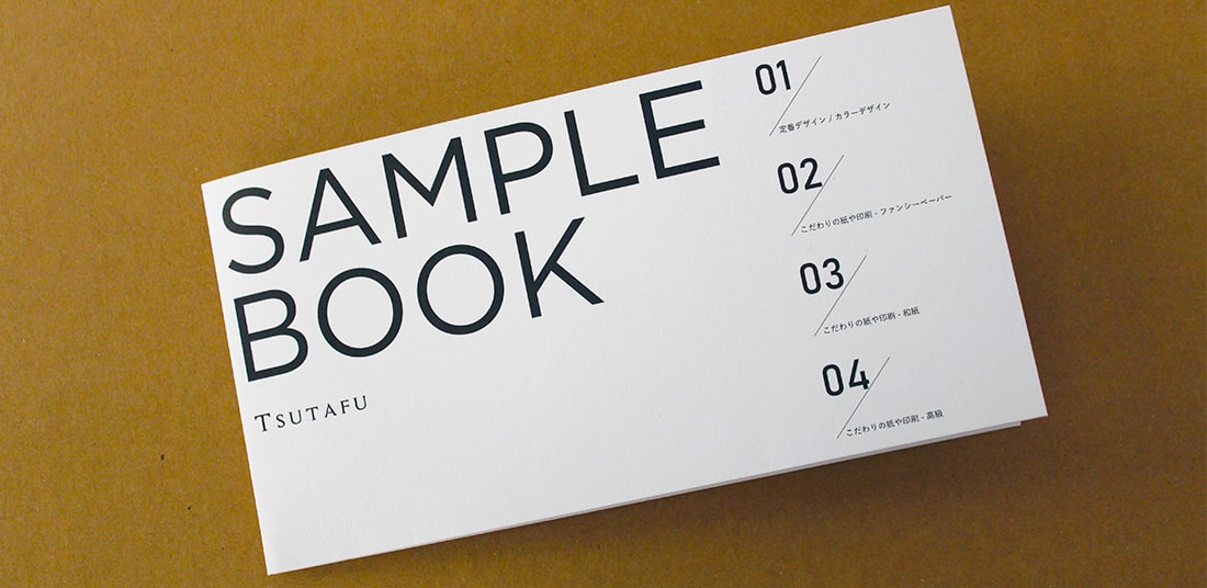 TSUTAFUでは商品タイプ別で使用可能な用紙を収録したSAMPLE BOOKをご用意しております。 ※SAMPLE BOOK 01 は SAMPLE POCKET にリニューアルしております。