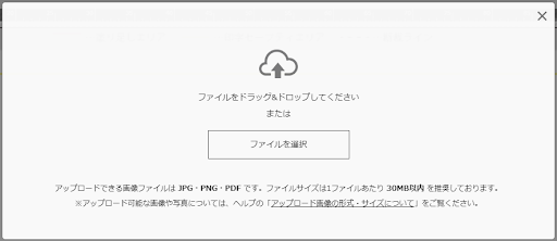 表示されたウィンドウにファイルをドラッグ&ドロップ、または「ファイルを選択」をクリックしてPCに保存してあるファイルを選択するとキャンバス内に画像が配置されます。