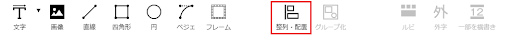 「整列」「均等配置」は複数のアイテムに対して行う機能です。複数アイテムを選択しているときのみ有効になります。 「用紙配置」は用紙に対してクリック1つで配置を調整する機能です。