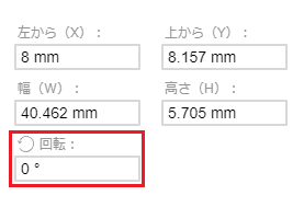 画像を選択して、調整パネルの位置調整ツールに数値を入力して回転します。