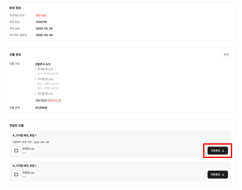 마이페이지 → 후원한 프로젝트 → 후원 상세