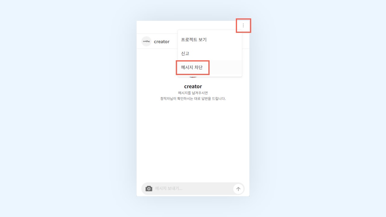 [창작자 문의] > 더보기(…)> 메시지 차단을 선택해 주세요.