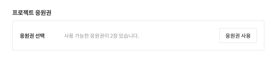 응원권을 발급 받은 프로젝트 페이지로 접속할 경우, 아래와 같이 사용 가능한 응원권이 있다는 안내가 표시됩니다.