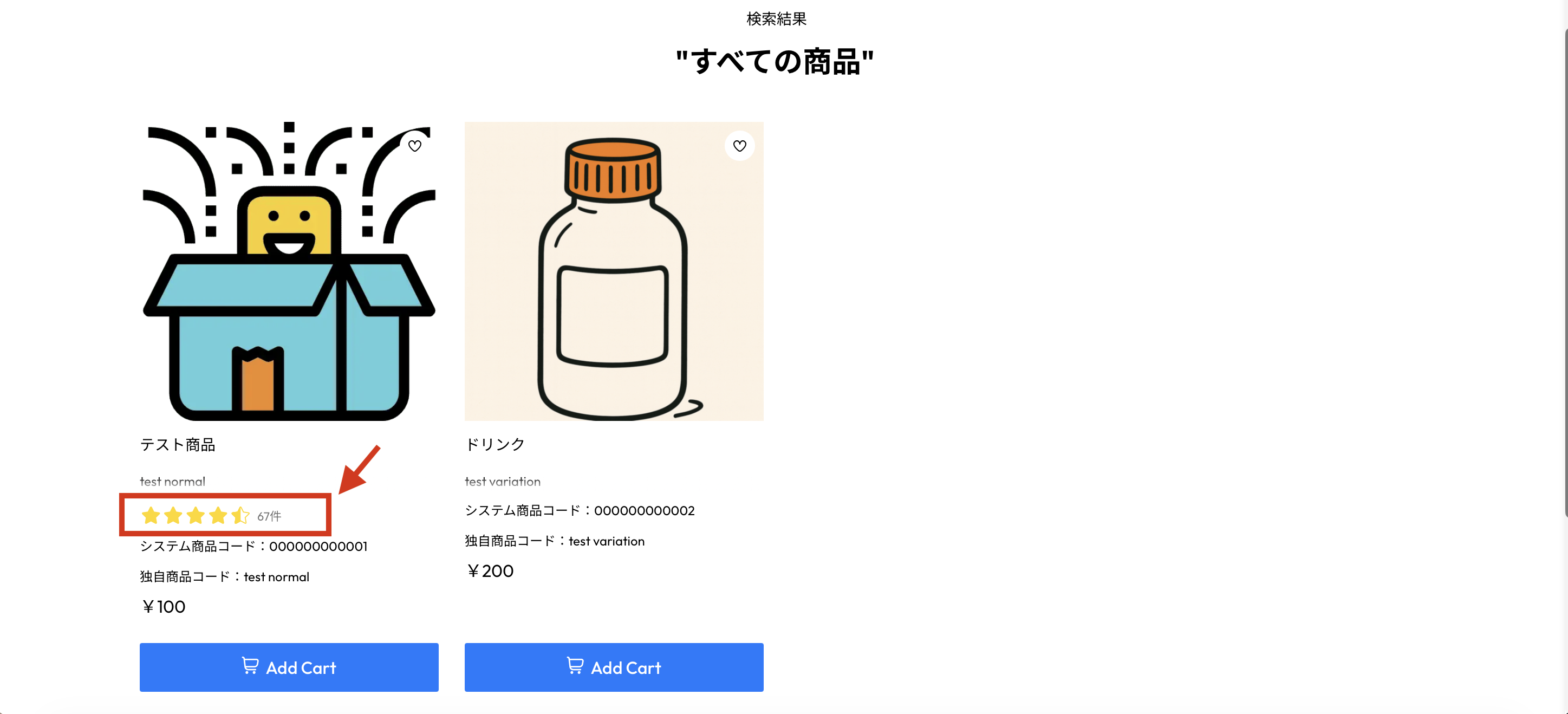 ③商品カテゴリーページにスターレーティングが表示されました🎉