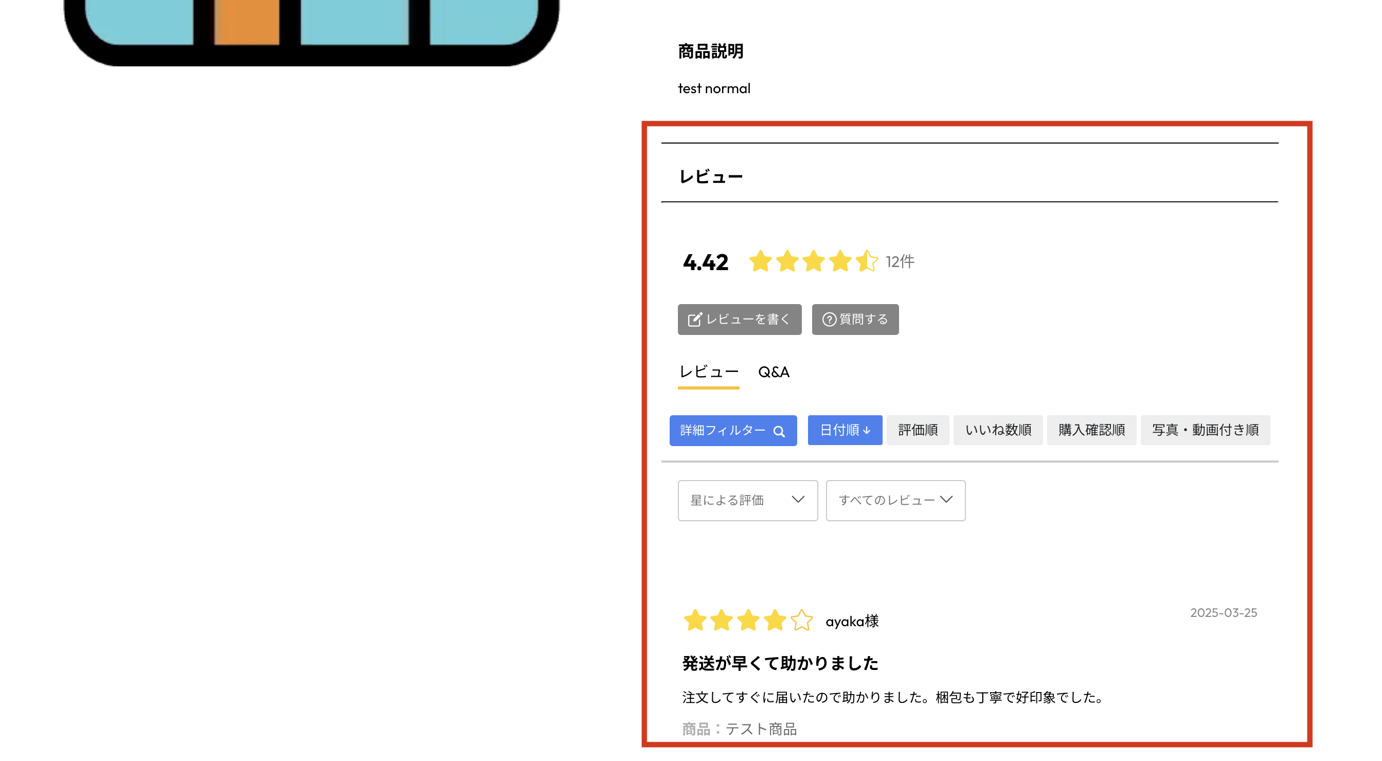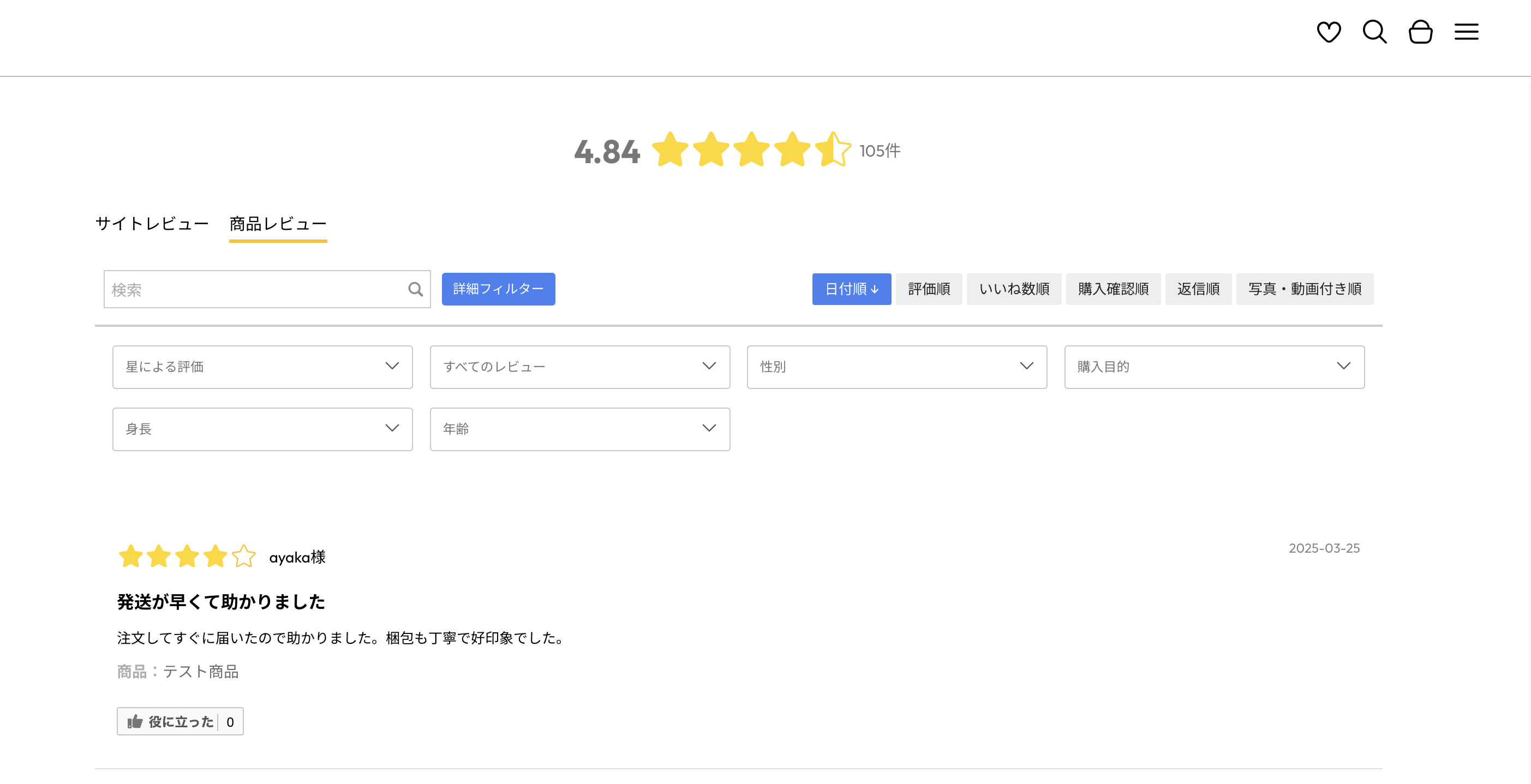 ☝️商品詳細ページの下にレビューを表示することで、ページの変遷を減らすことができます。